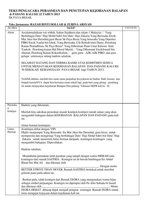 Teks pengacara perasmian dan penutupan kejohanan sukan