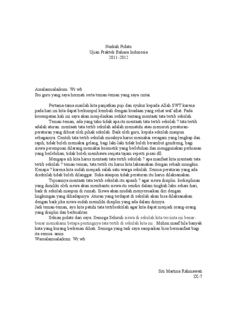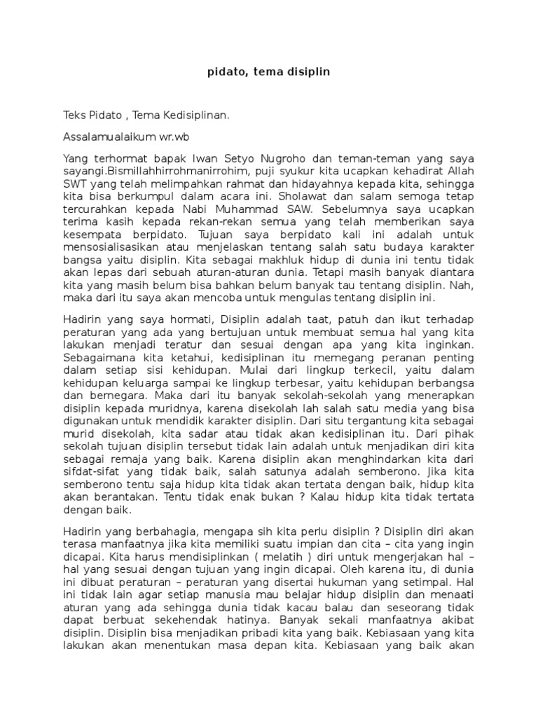 DOC) Contoh Pidato : Kedisiplinan | fergya sugandhi - Academia.edu