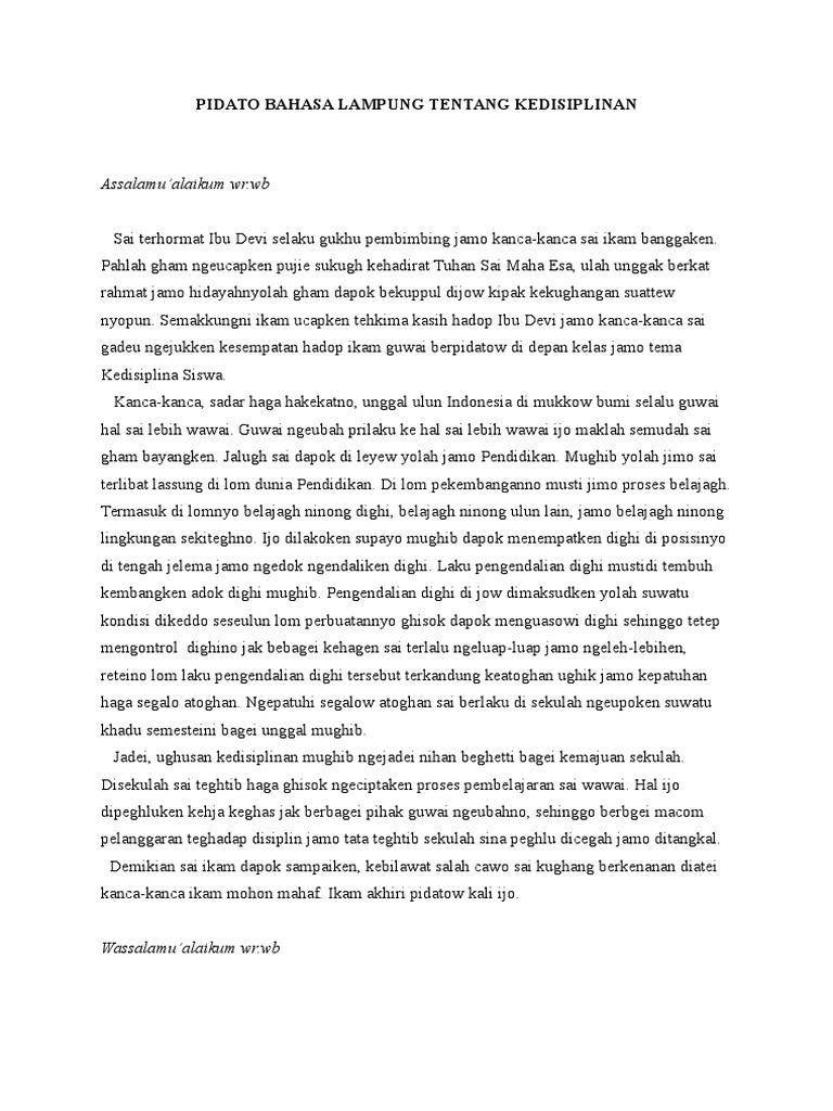 Pidato Bahasa Lampung Tentang Kedisiplinan