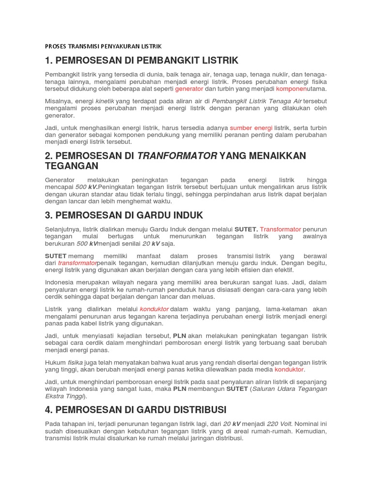 Proses Transmisi Penyakuran Listrik