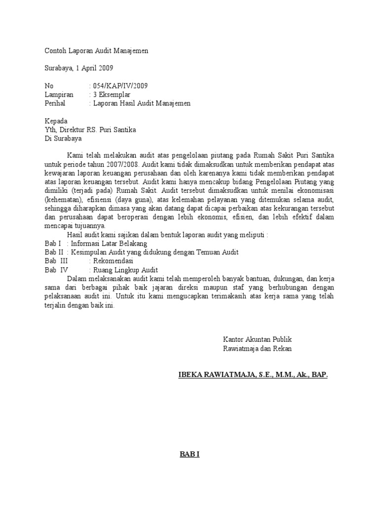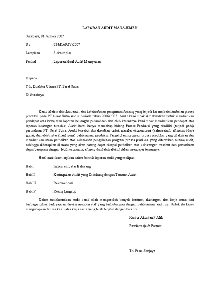Contoh Laporan Audit Manajemen Pada Perusahaan - Kumpulan Contoh Laporan