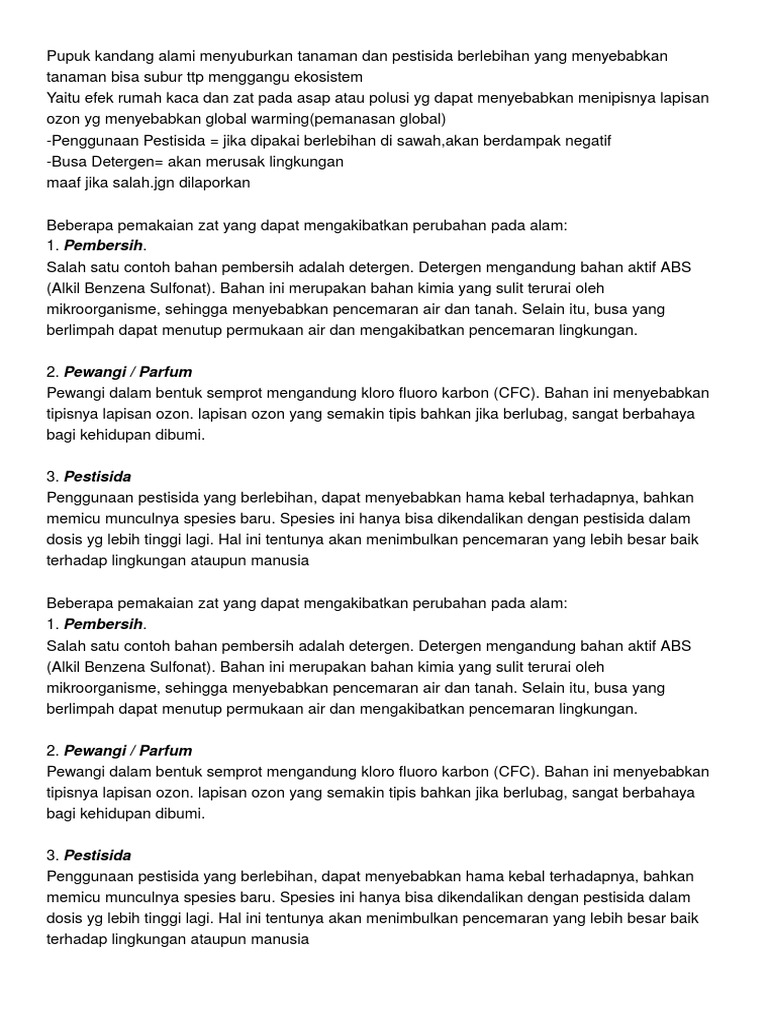 Pemakaian Benda Atau Zat Yang Dapat Mengakibatkan Perubahan Pada Alam