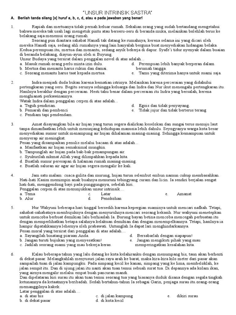 Contoh Soal Cos Dan Jawaban Unsur Instrisik Cerpen - Guru Ilmu Sosial