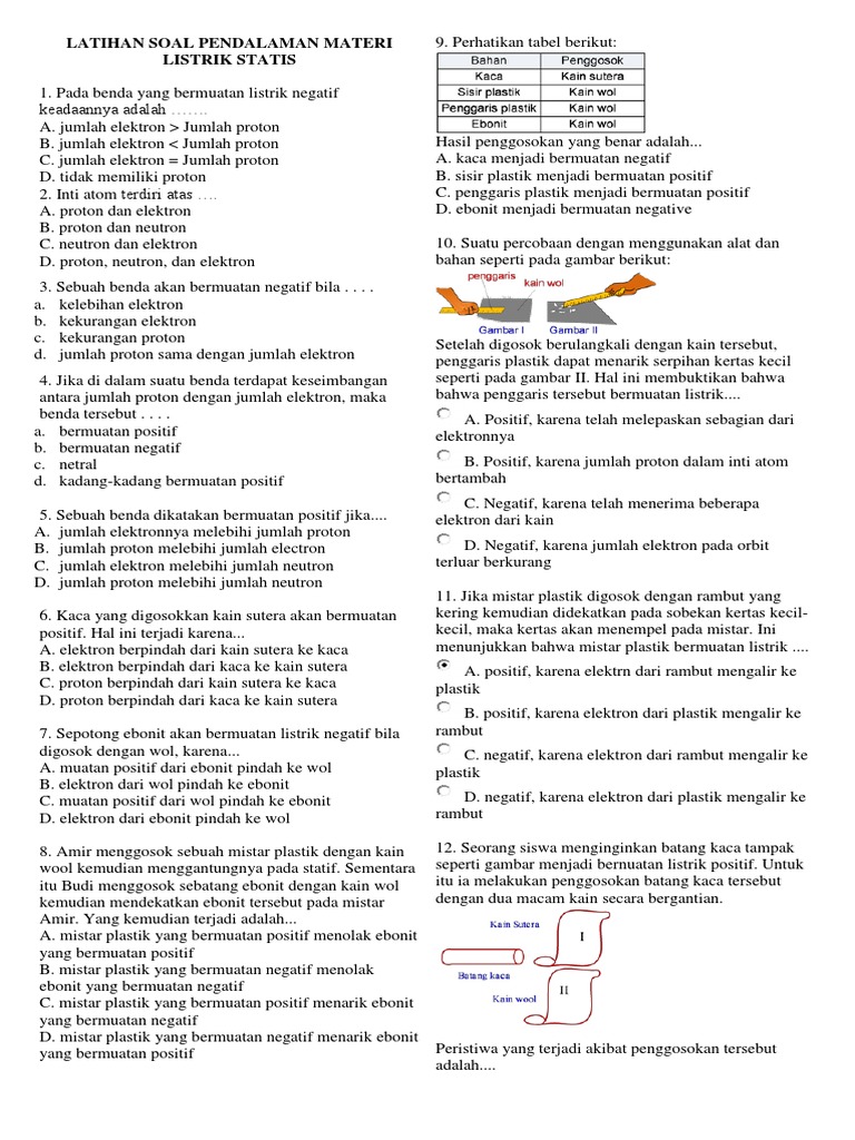 SMP kelas 9 - FISIKA BAB 1. LISTRIK STATISLatihan Soal PDF Free …