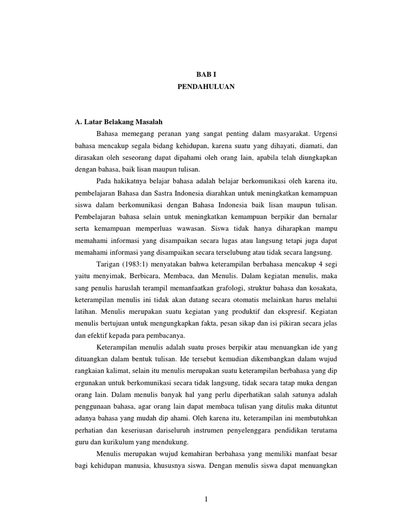 1 BAB I PENDAHULUAN 1.1 Latar Belakang Kemampuan menulis