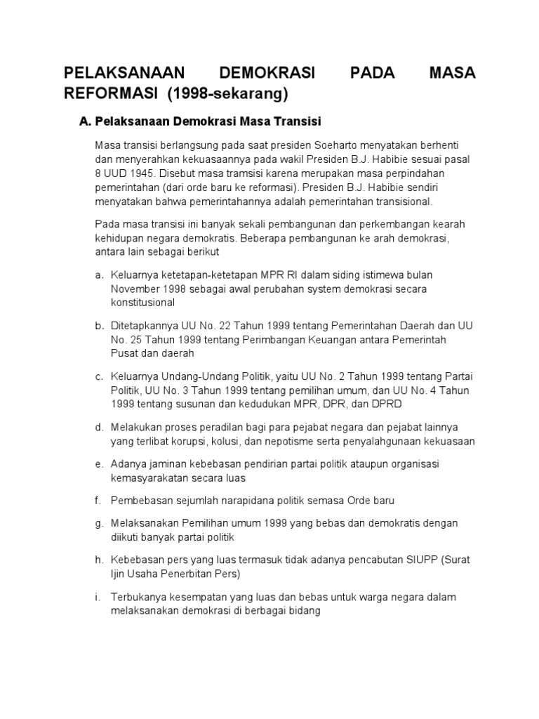 DOC) PELAKSANAAN DEMOKRASI PADA MASA REFORMASI klpk 3 | Yudi Suardi - Academia.edu