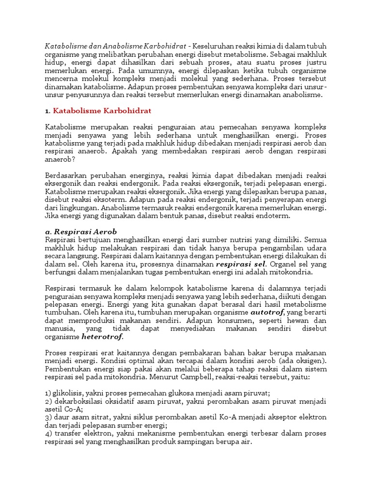 Katabolisme dan Anabolisme Karbohidrat - Keseluruhan reaksi kimia di dalam tubuh