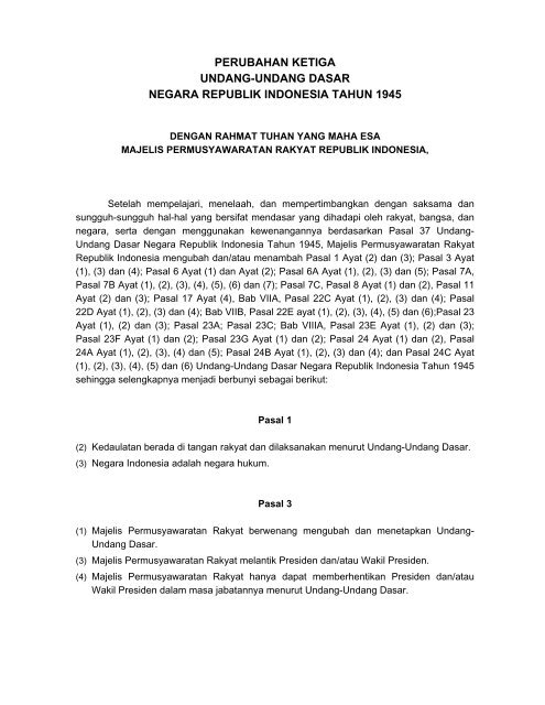 perubahan ketiga undang-undang dasar negara republik indonesia