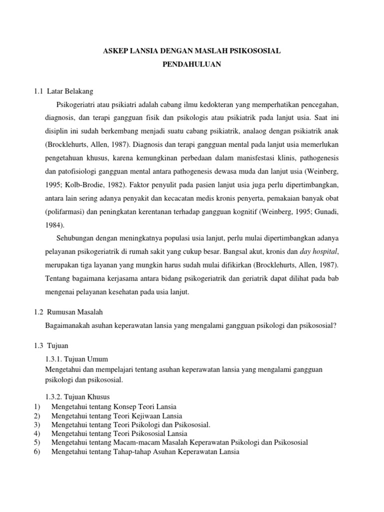 PDF) Masalah Psikososial Pada Lanjut Usia ( Kartinah dan Agus …