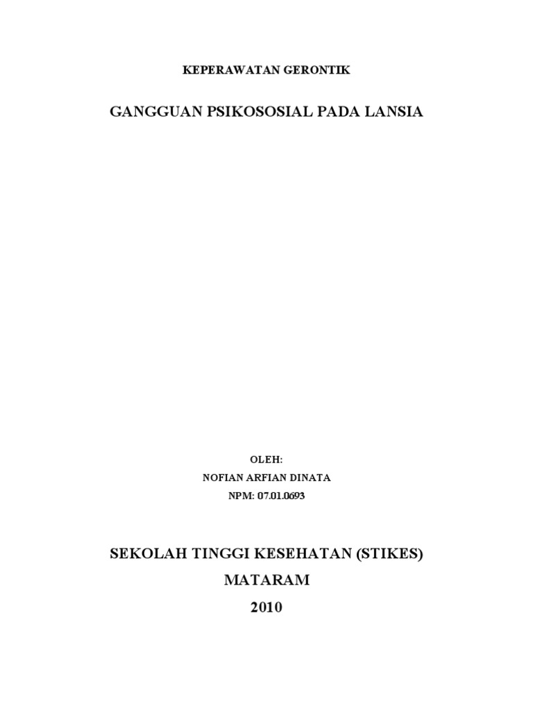 ASKEP LANSIA DENGAN GANGGUAN PSIKOSOSIAL - KTI Kebidanan