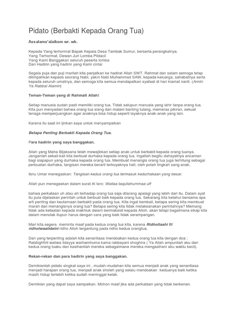 DOC) Contoh Teks Pidato Pildacil -Berbakti Kepada Orang Tua | Henny Rosa - Academia.edu