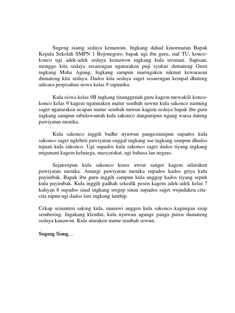 Contoh Pidato Bahasa Jawa Tentang Perpisahan Singkat