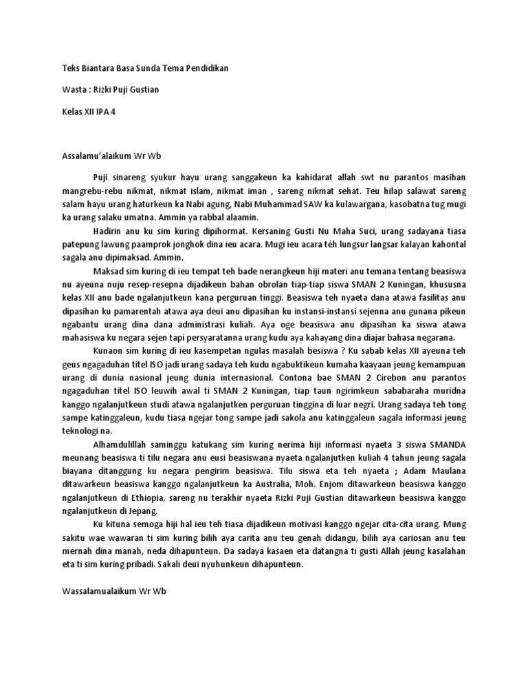 Contoh Pidato Bahasa Sunda Pendek Tentang Pendidikan | informasi lowongan pekerjaan bulan ini