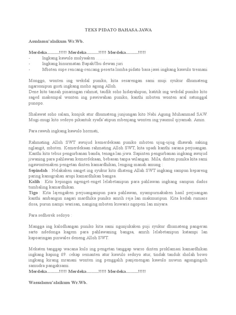 Teks Pidato Bahasa Jawa