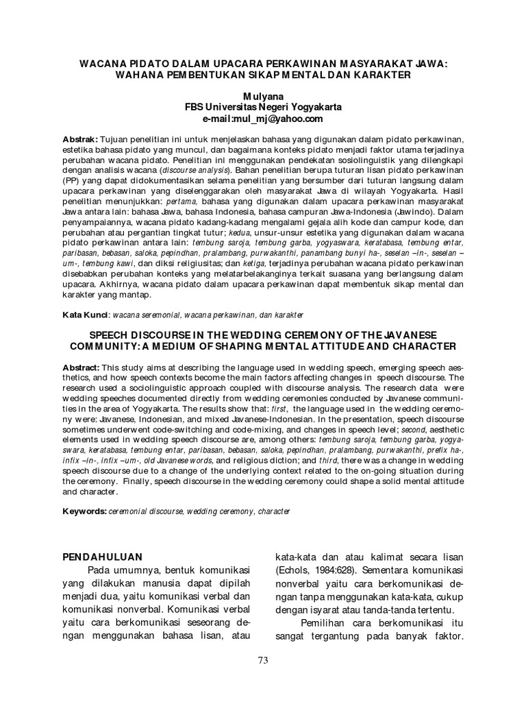 PDF) WACANA SEREMONIAL PIDATO DALAM UPACARA PERKAWINAN ADAT JAWA (Speech Ceremonial Discourse in The Javanese Tradition Wedding Ceremony)