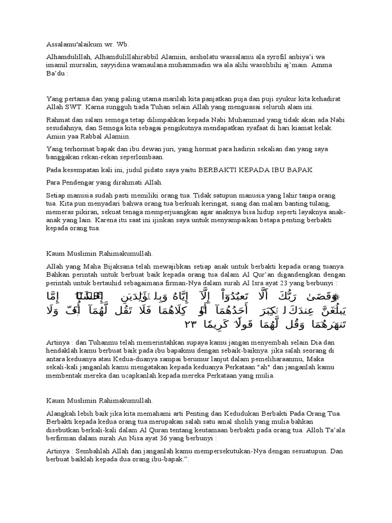 DOC) Pidato Bahasa Indonesia Ceramah " BERBAKTI KEPADA ORANG TUA'' | fikri zikri - Academia.edu