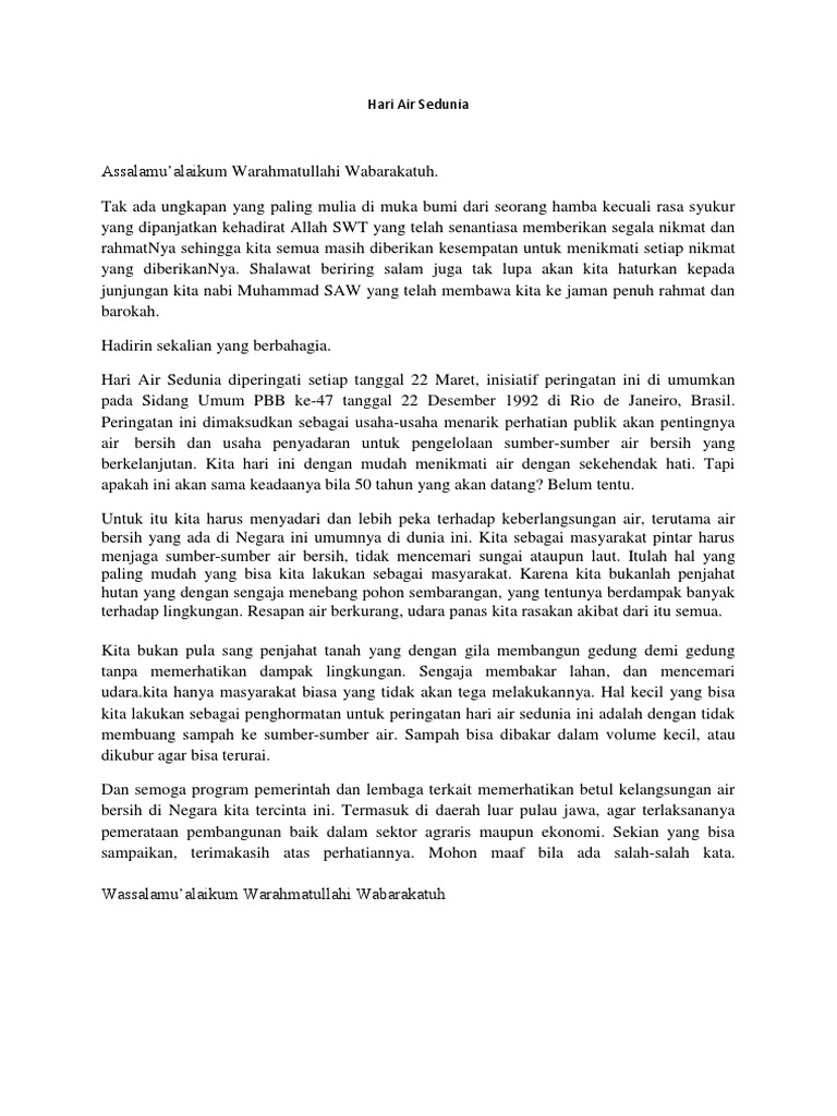 Pembukaan Pidato Hari Air Sedunia