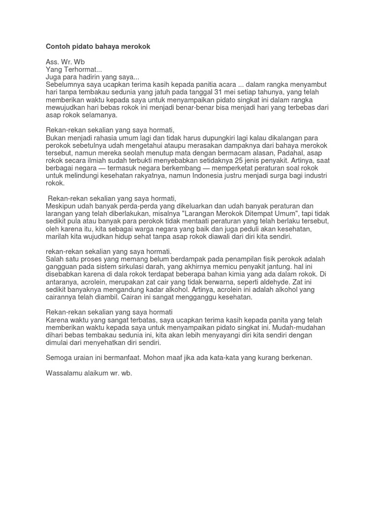 Pidato bahasa indonesia bahaya merokok bagi kesehatan