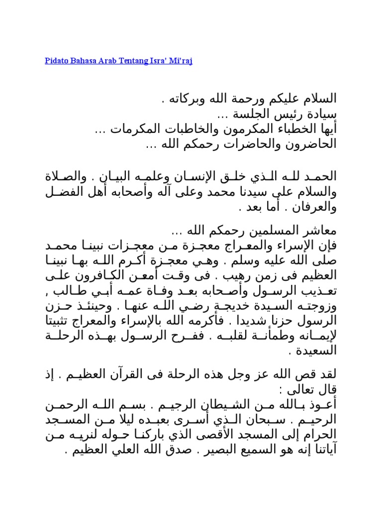 Pidato bahasa arab tentang isra miraj singkat - Brainly.co.id
