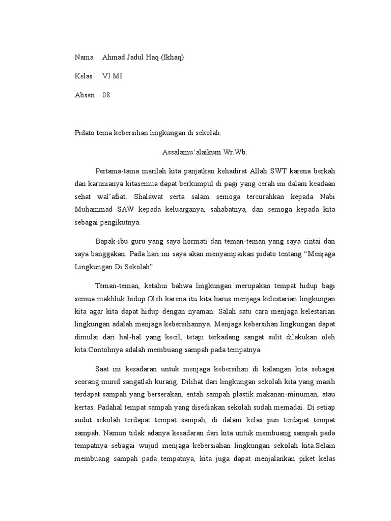 DOC) Pidato Kebersihan Lingkungan Sekolah | aditya hidayat …