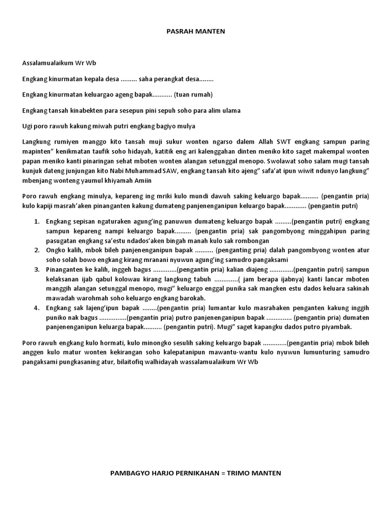 Contoh Pasrah Manten Kakung | Berbagi Informasi