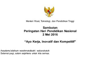 Pidato Sambutan Mendikbud Pada Hari Pendidikan Nasional 2016 - Belajar Bahasa Inggris Mandiri