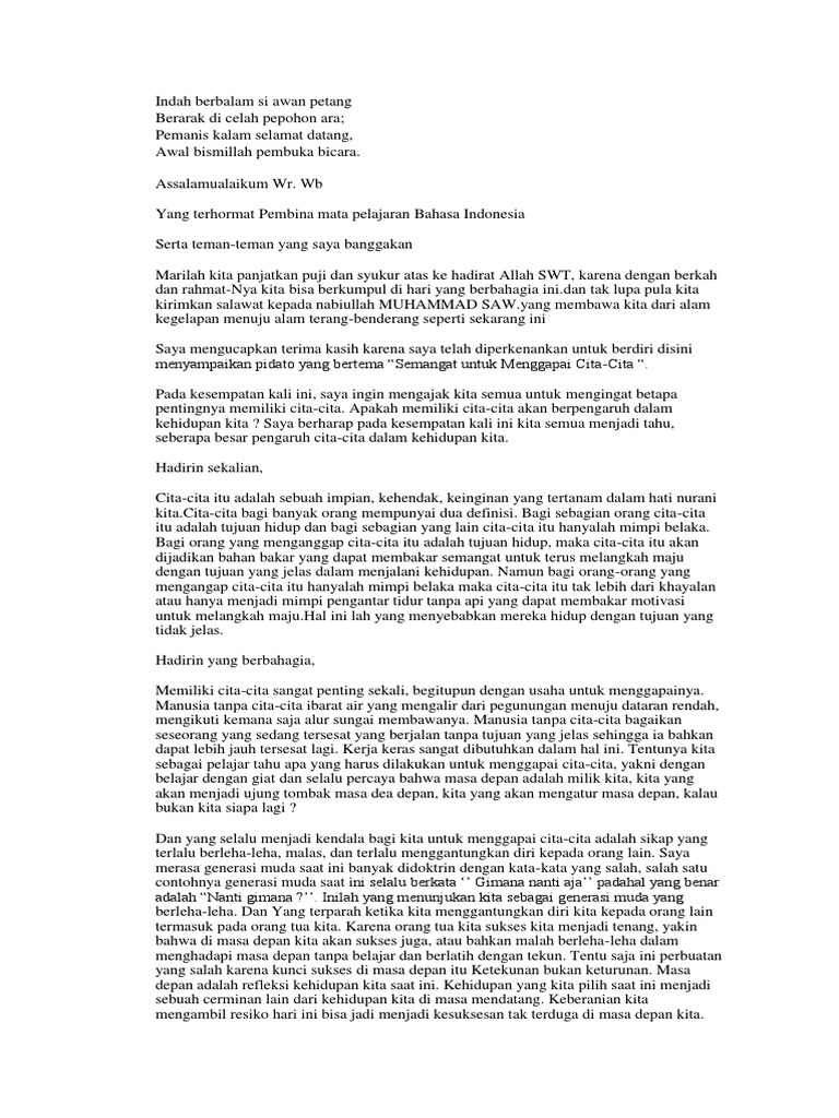 Contoh Pidato Kibarkan Cita Cita Setinggi Langit - Temukan Contoh