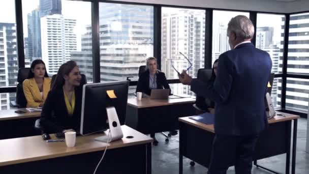 Pemimpin senior memberikan pidato nasihat kepada anggota tim — Stok Video © BiancoBlue #396600562