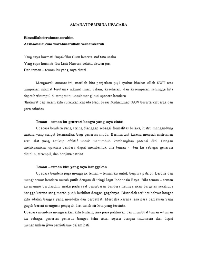 DOC) Contoh Amanat Pembina Upacara Ke-1 | Sdndua Denggen - Academia.edu