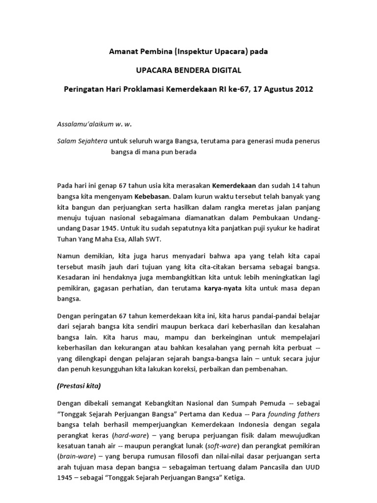 DOC) Contoh Amanat Pembina Upacara Ke-1 | Sdndua Denggen …