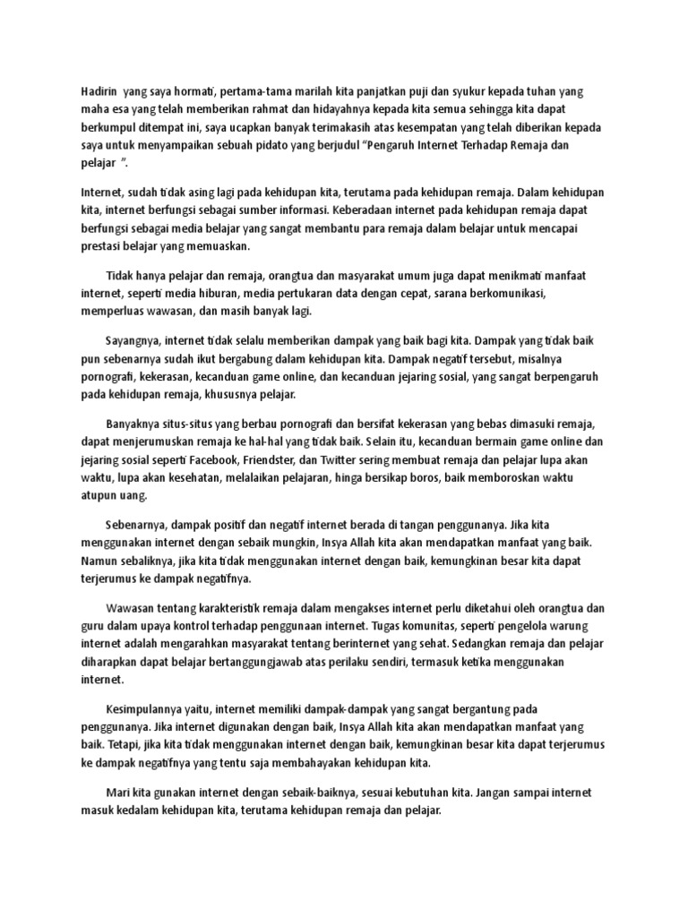DOC) Kumpulan Pidato “Pengaruh Internet Terhadap Remaja” | Irma Yahya - Academia.edu