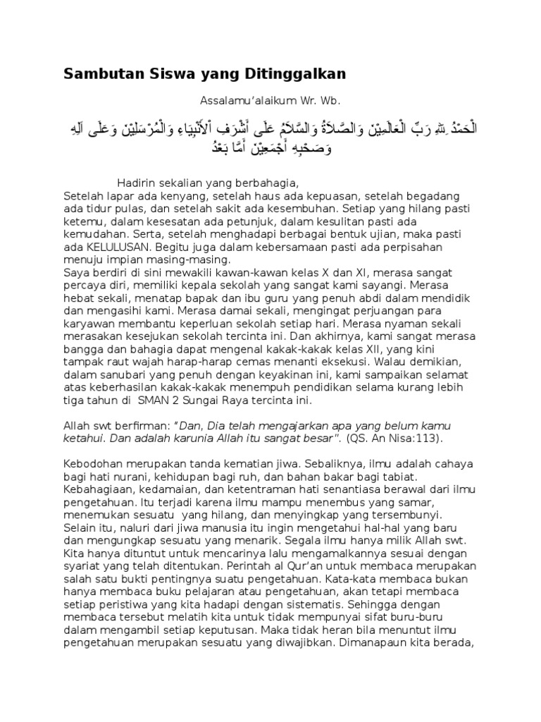 DOC) SAMBUTAN ADIK KELAS YANG DITINGGALKAN | muhlis Rachmad - Academia.edu
