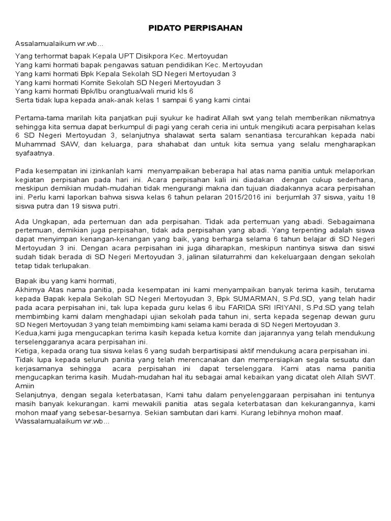 CONTOH TEKS NASKAH PIDATO SINGKAT TENTANG PERPISAHAN KELAS SEKOLAH SD, SMP SMK SMA - YouTube