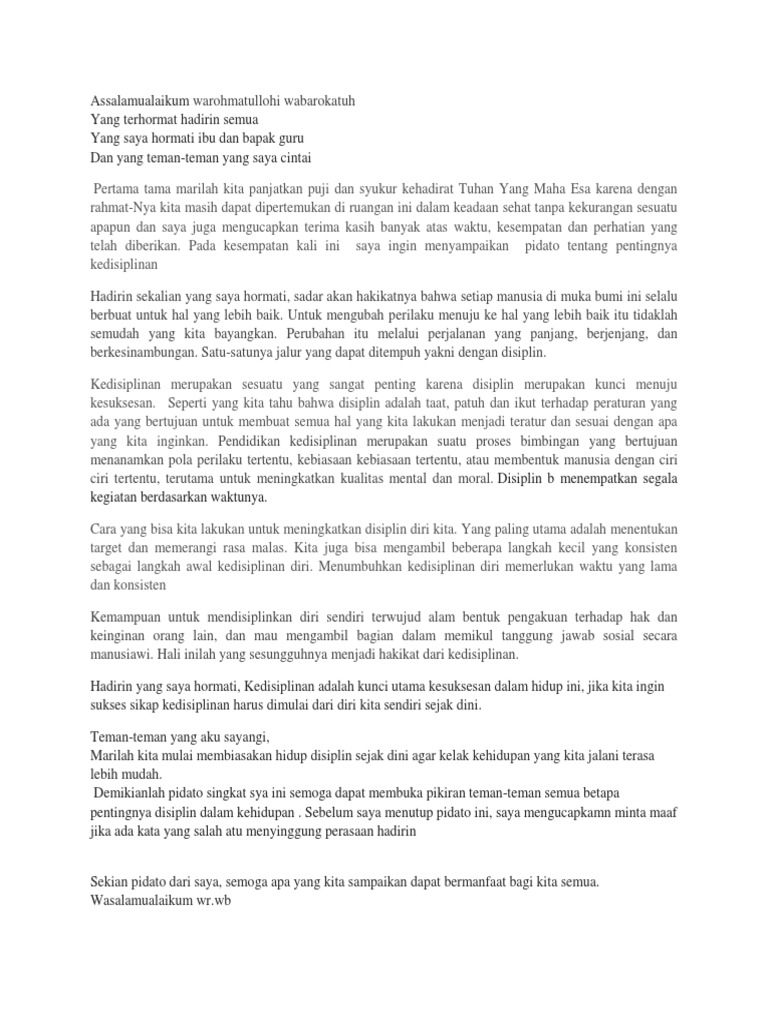 DOC) Contoh Pidato : Kedisiplinan | fergya sugandhi - Academia.edu