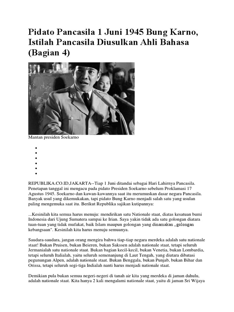Pidato Bersejarah Sukarno Tentang Lahirnya Pancasila (2 …
