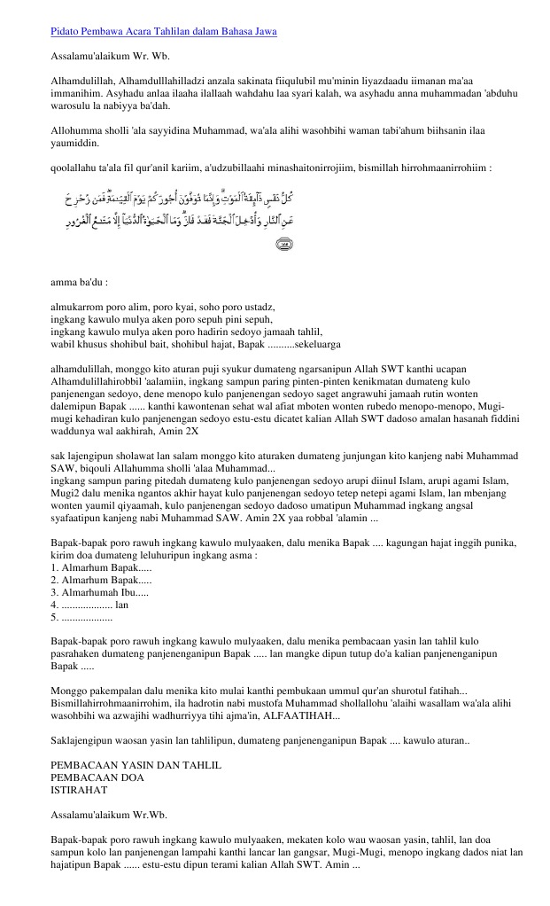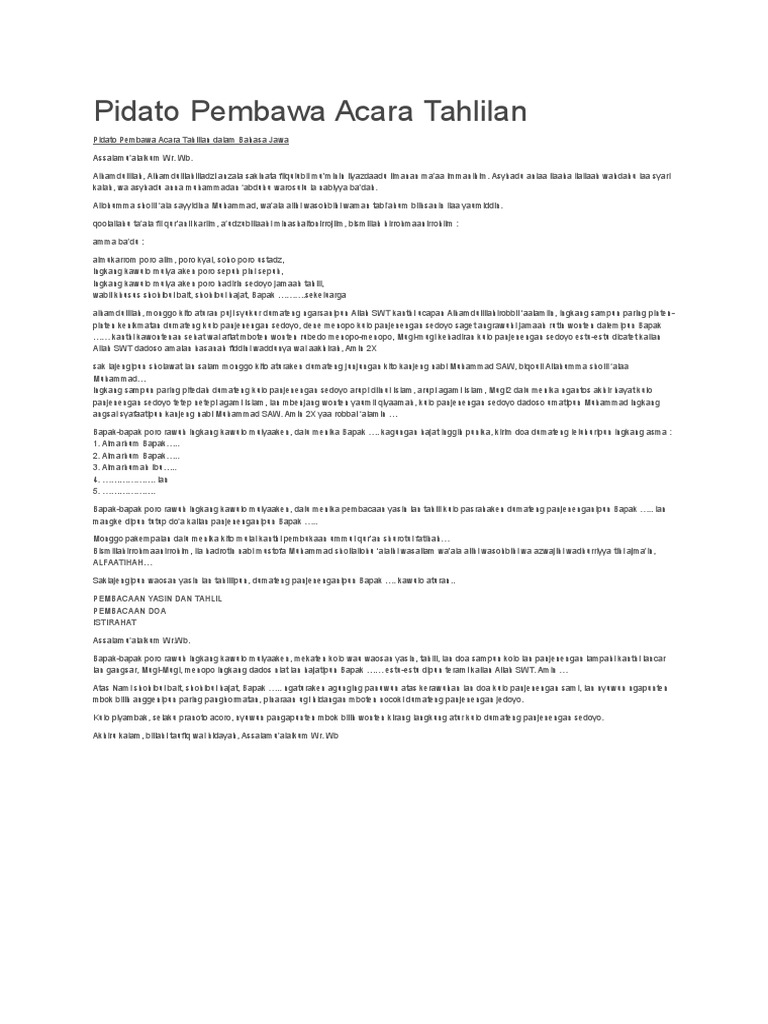 Pidato Pembawa Acara Tahlilan - Documents