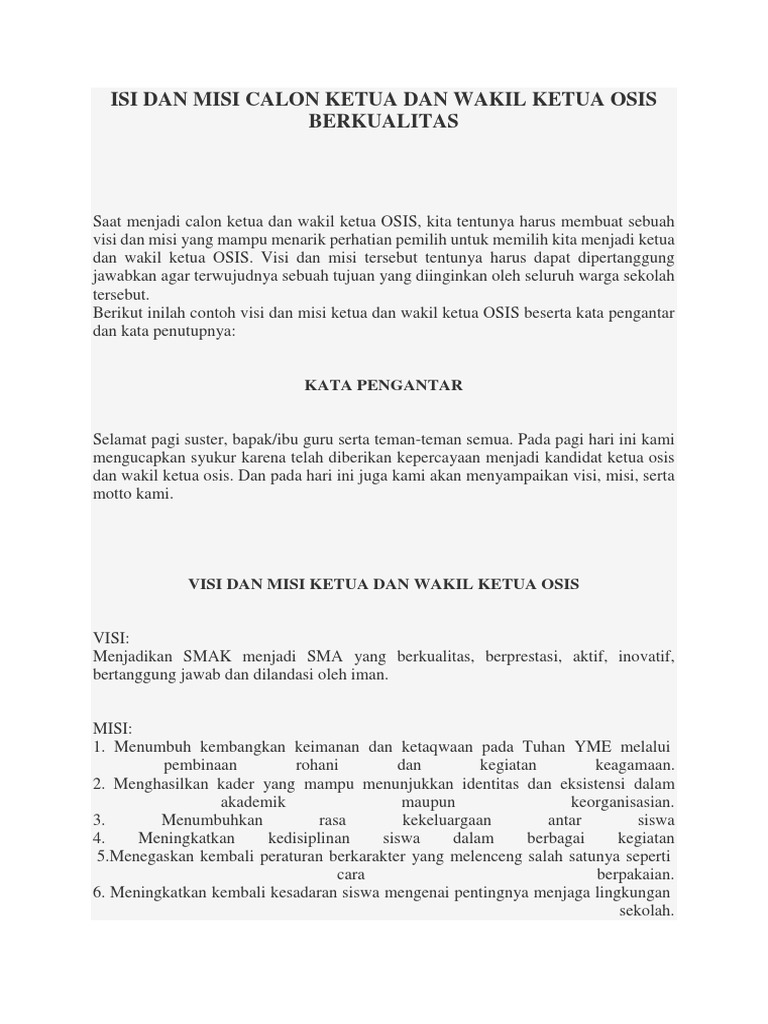 DOC) PIDATO VISI DAN MISI KANDIDAT KETUA OSIS DAN WAKIL OSIS | atika kurnia syifa - Academia.edu