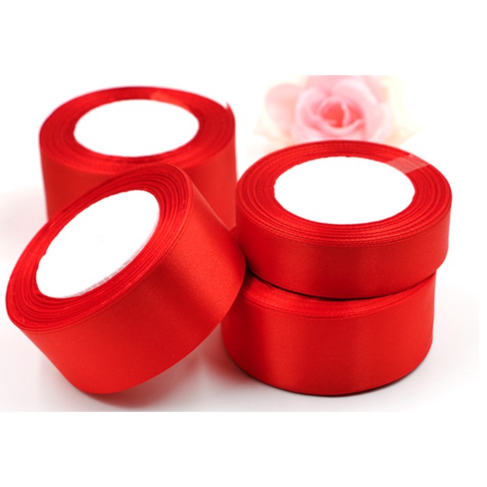 Warna Merah 100 Yards/Roll Poliester Pita Kain Satin Pita Pernikahan Natal Tahun Baru Jahit Rambut Busur Tangan DIY Bahan|pita pernikahan|diy bahan100 yard - AliExpress