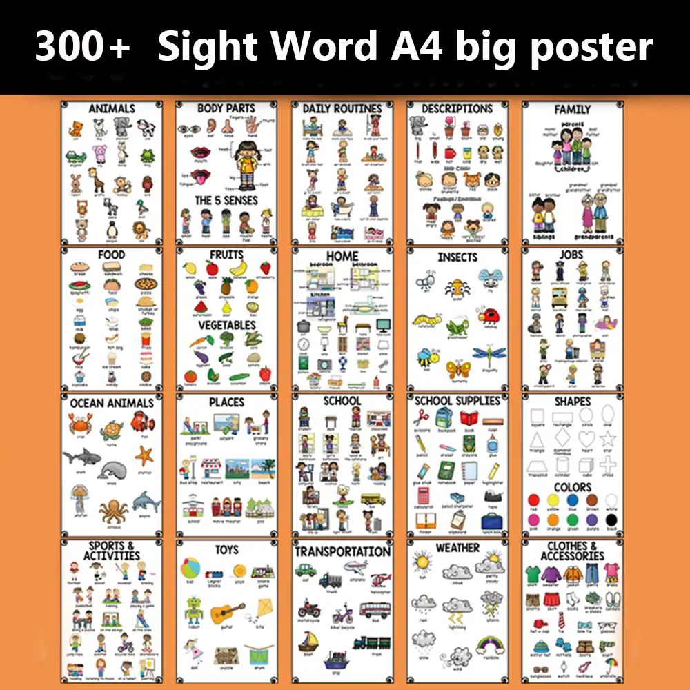 20Groups/Set A4 Size Cognition English Words Card Cartoon Poster Mind Map Early Learning Education Classroom Decoration Teacher| | - AliExpress