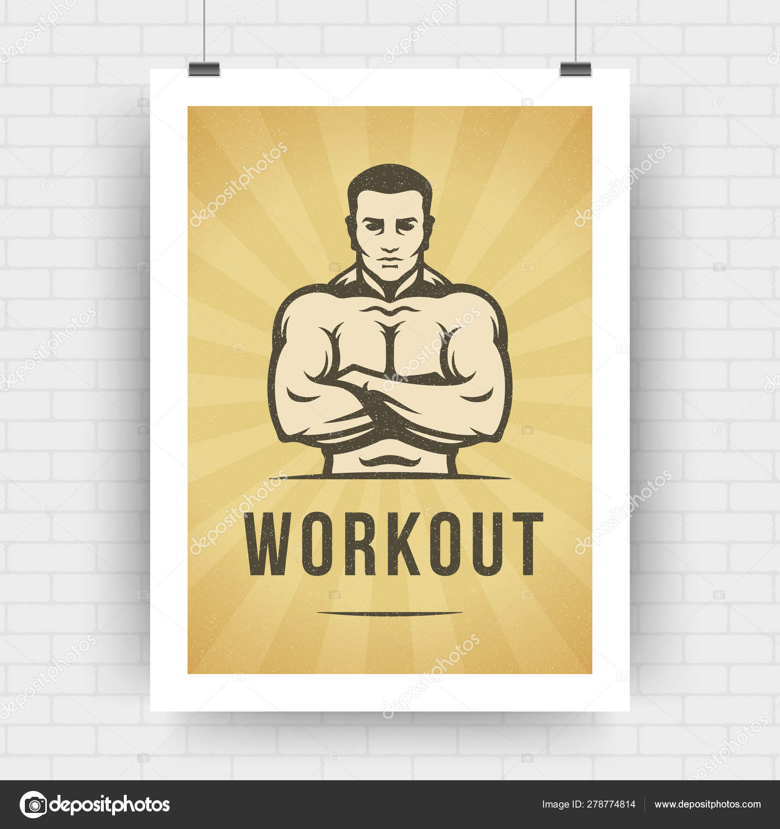 Fitness motivation poster retro typographic quote design template A4 size with bodybuilder man silhouette. Stock Vector © Provectors #278774814