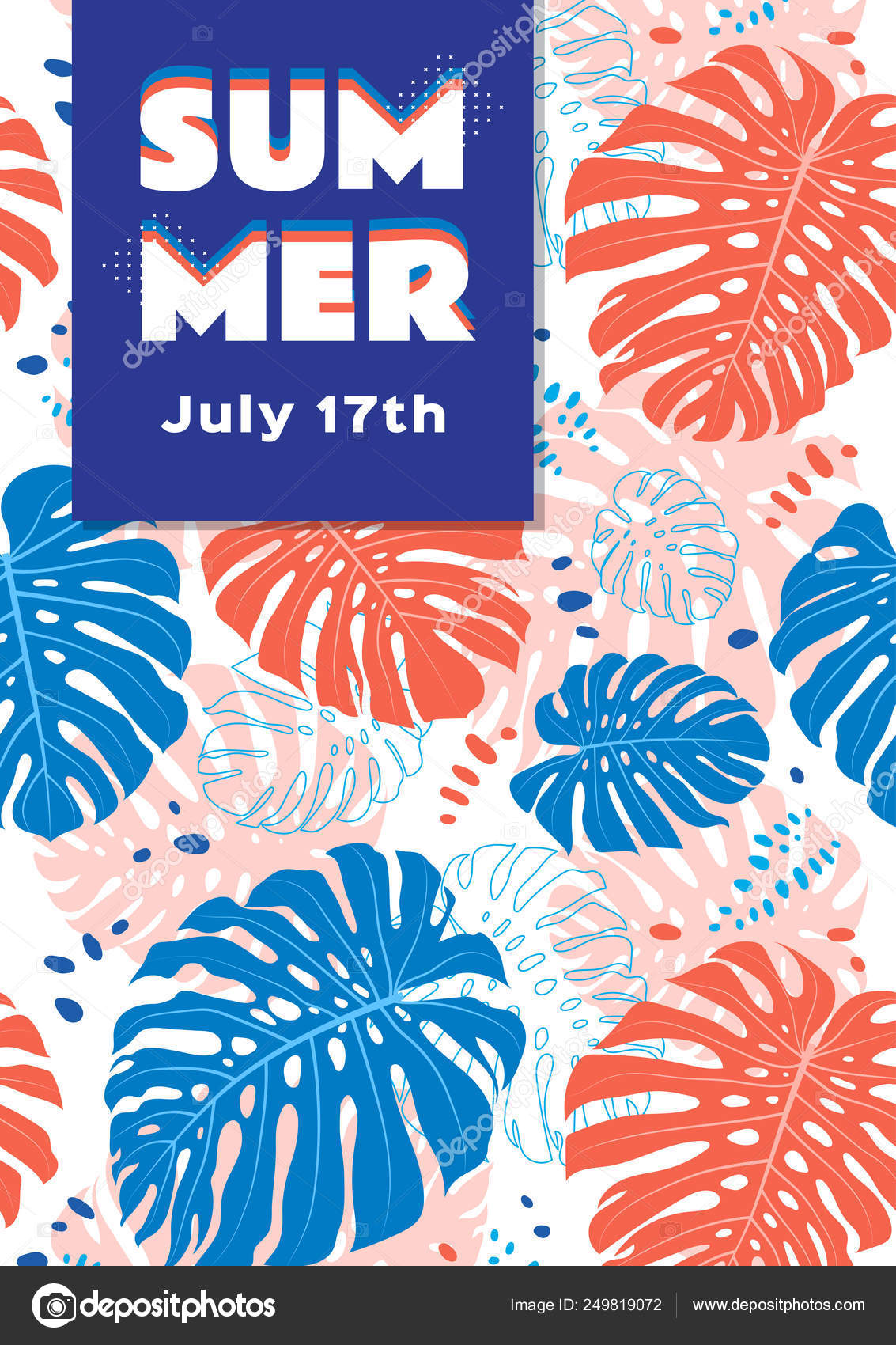 Summer poster Tropical leaves background. Vector illustration, A4 size Flat design Stock Vector © decobrush #249819072