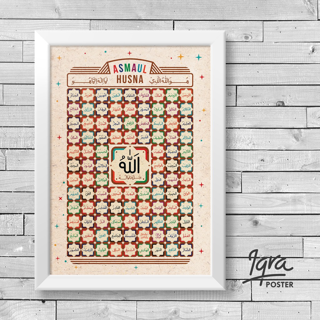 Poster KALIGRAFI ISLAM: ASMAUL HUSNA - Jumbo size 50 x 70 cm …