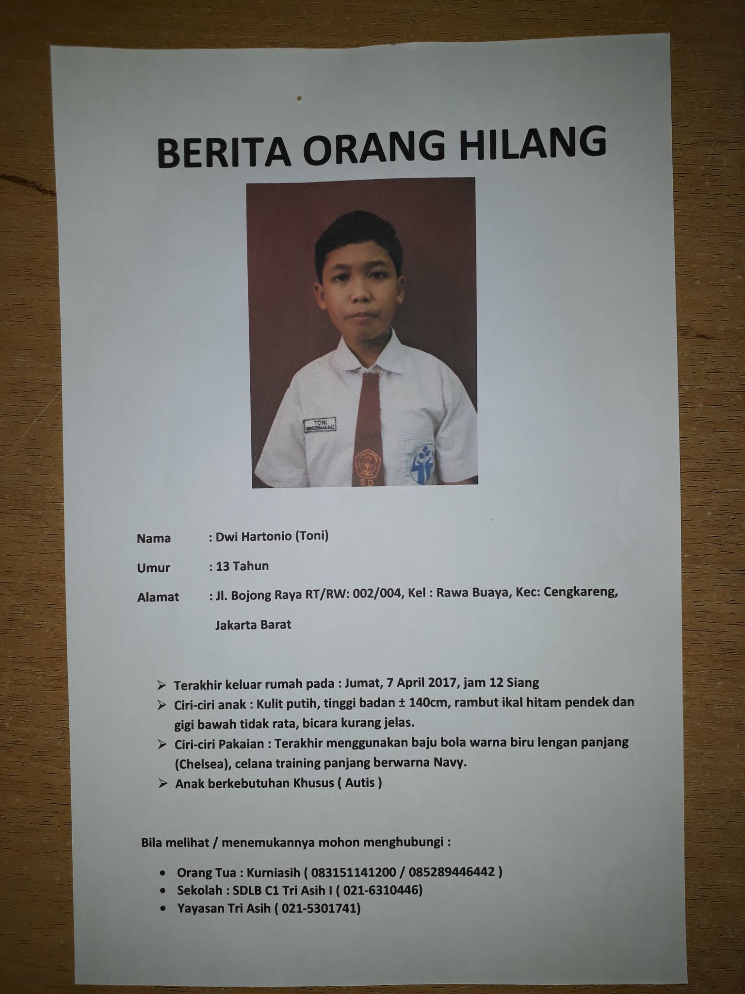TMC Polda Metro Jaya on Twitter: “Info orang hilang https://t.co/DackJSGMpg”