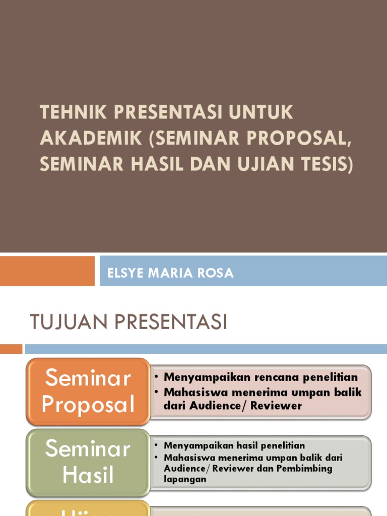 TEHNIK PRESENTASI UNTUK AKADEMIK (SEMINAR PROPOSAL, SEMINAR HASIL DAN UJIAN TESIS) ELSYE MARIA ROSA. - ppt download