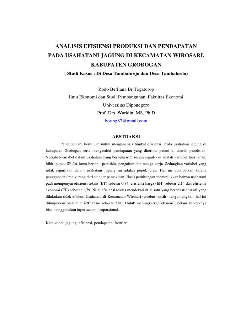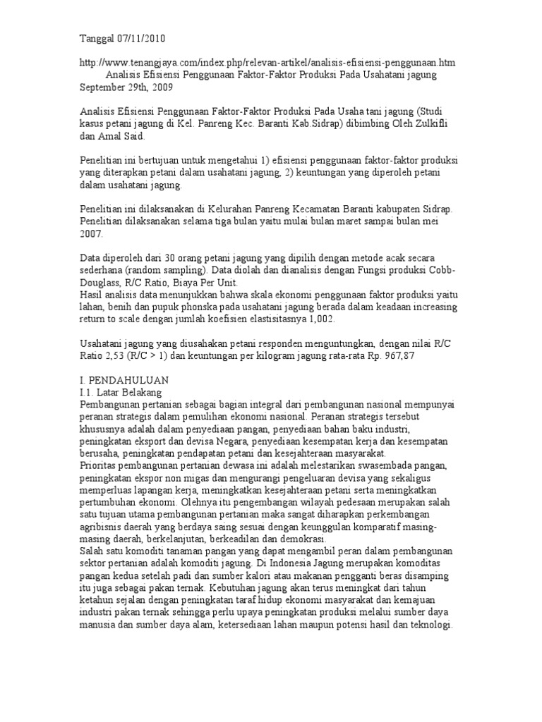 Analisis Efisiensi Produksi Dan Pendapatan Usahatani Jagung - [PDF Document]