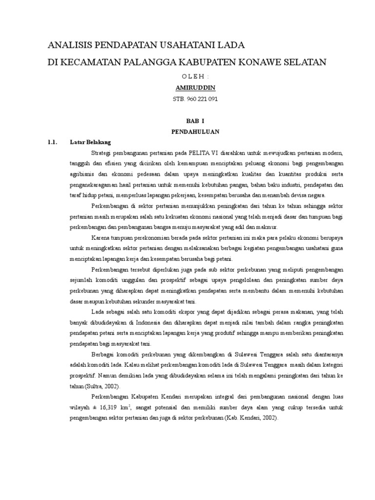 ANALISIS PENDAPATAN DAN TINGKAT KESEJAHTERAAN PETANI LADA DI KECAMATAN GUNUNG LABUHAN KABUPATEN WAY KANAN