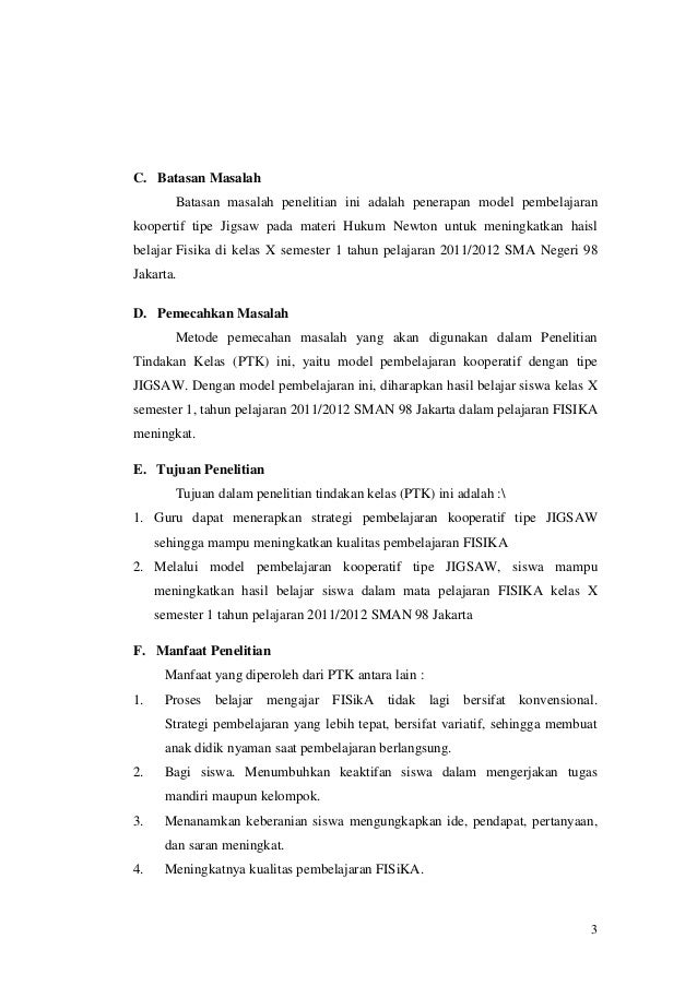 DOC) PROPOSAL PENELITIAN TINDAKAN KELAS MENINGKATKAN HASIL BELAJAR FISIKA MELALUI MODEL PEMBELAJARAN KONTEKSTUAL TIPE PROBLEM BASED LEARNING KELAS X SMA NEGERI 36 JAKARTA | Dian Sari - Academia.edu