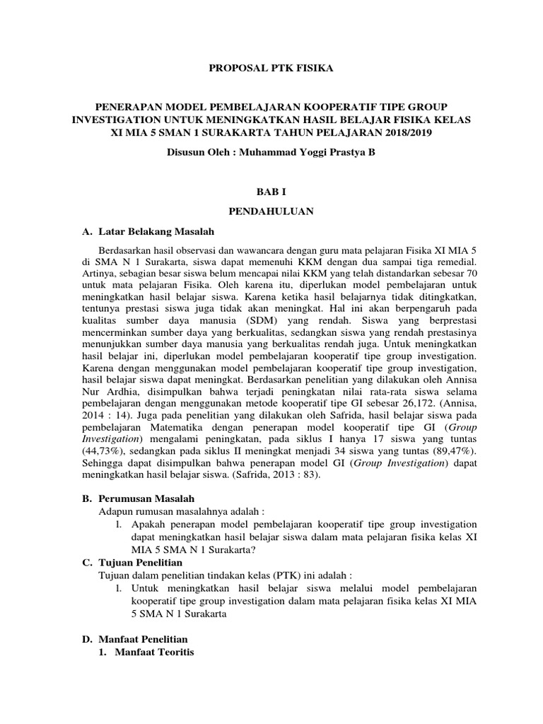 Contoh Proposal Ptk Fisika Sma