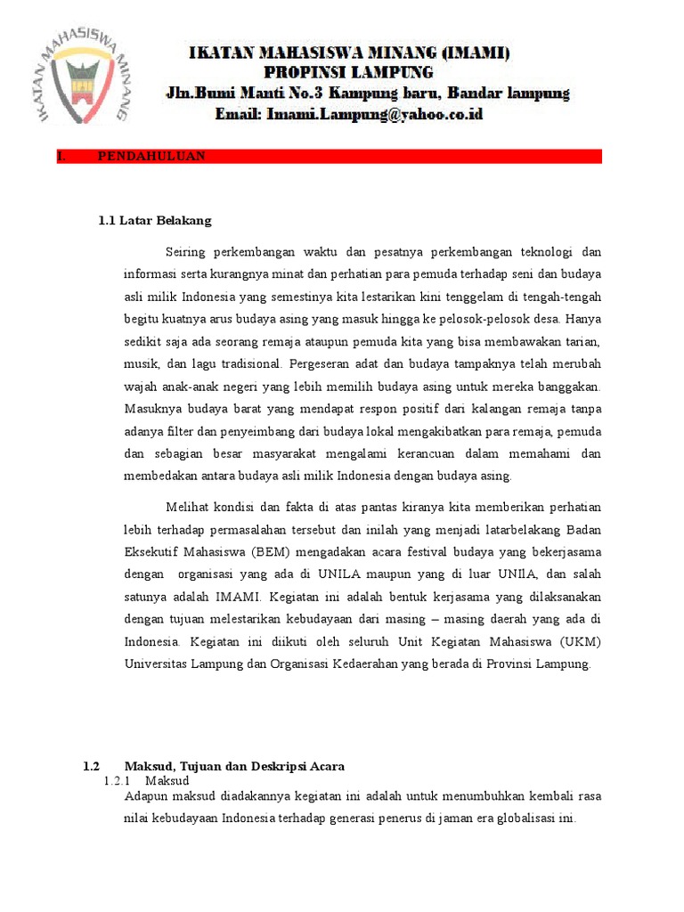 Contoh Proposal Festival Seni Dan Budaya Pdf - Berbagi Contoh Proposal