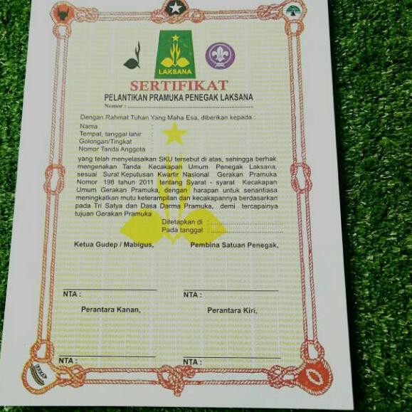 Barang Pilihan.. Sertifikat pramuka penegak TKU Bantara Laksana 20 lembar | Shopee Indonesia